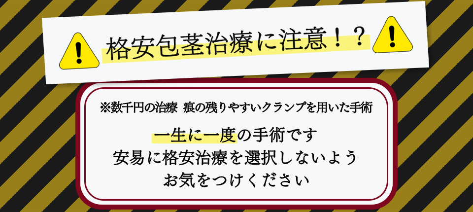 方法 余分な包皮を切除し、『スタンダードカット』より亀頭下部に近い位置で縫合し、オールハンドメイドの丁寧な施術で仕上げます。手術痕がやや目立ってしまう場合があります。
