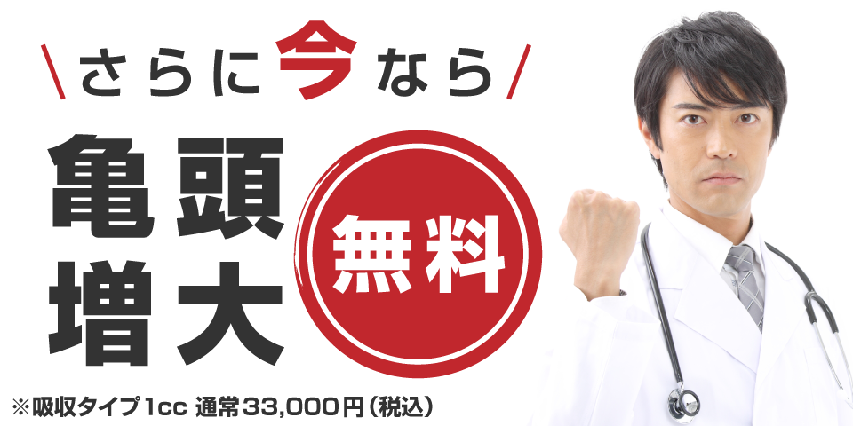 • ・亀頭増大(吸収タイプ)1cc 33,000円(税込)