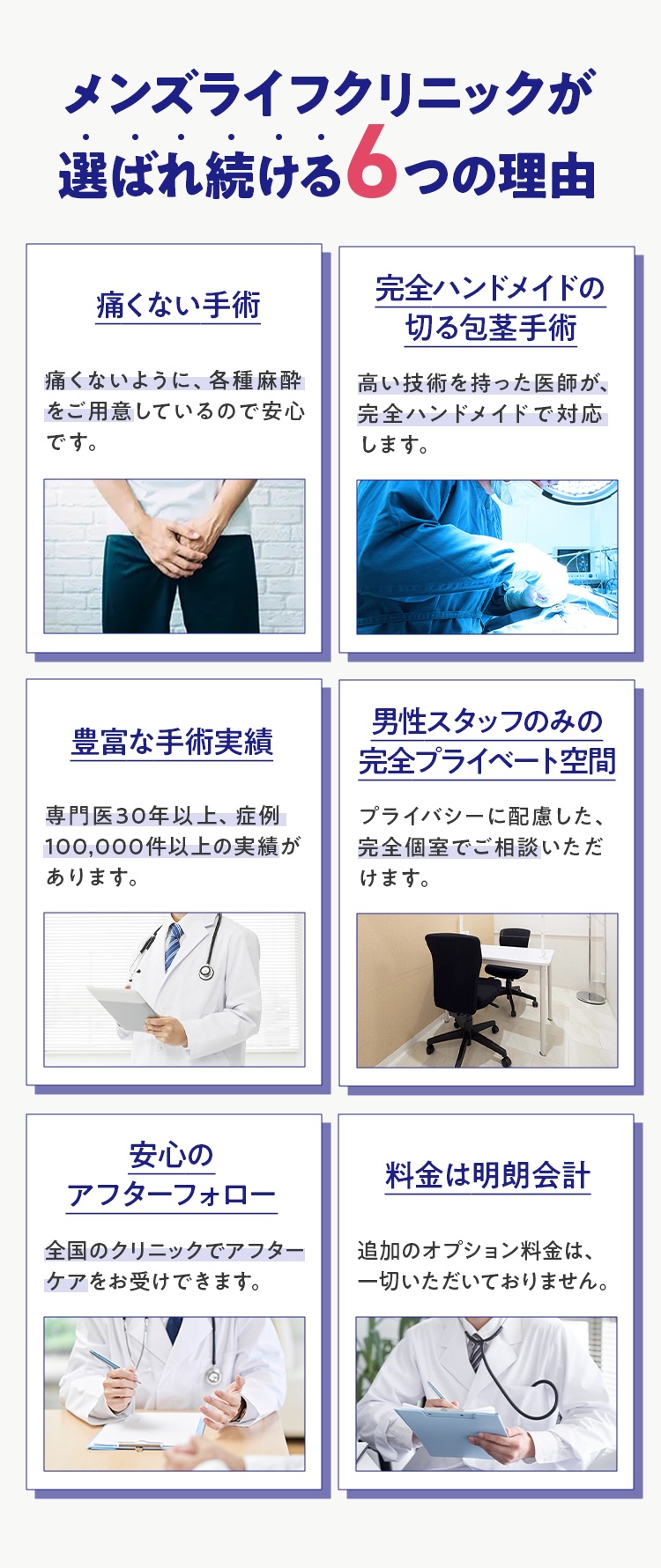 「包皮が炎症して、慢性的に痛みやかゆみが生じる」「性器クラミジア感染症や尖圭コンジローマなどの病気にかかる」「尿道に細菌が入り、膀胱や腎臓が炎症する」など症状によっては入院治療が必要になるため、早めに受診をした方が良いです。